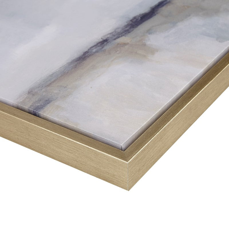 • Blue and neutral abstract framed canvas wall decor set with metallic gold embellishment